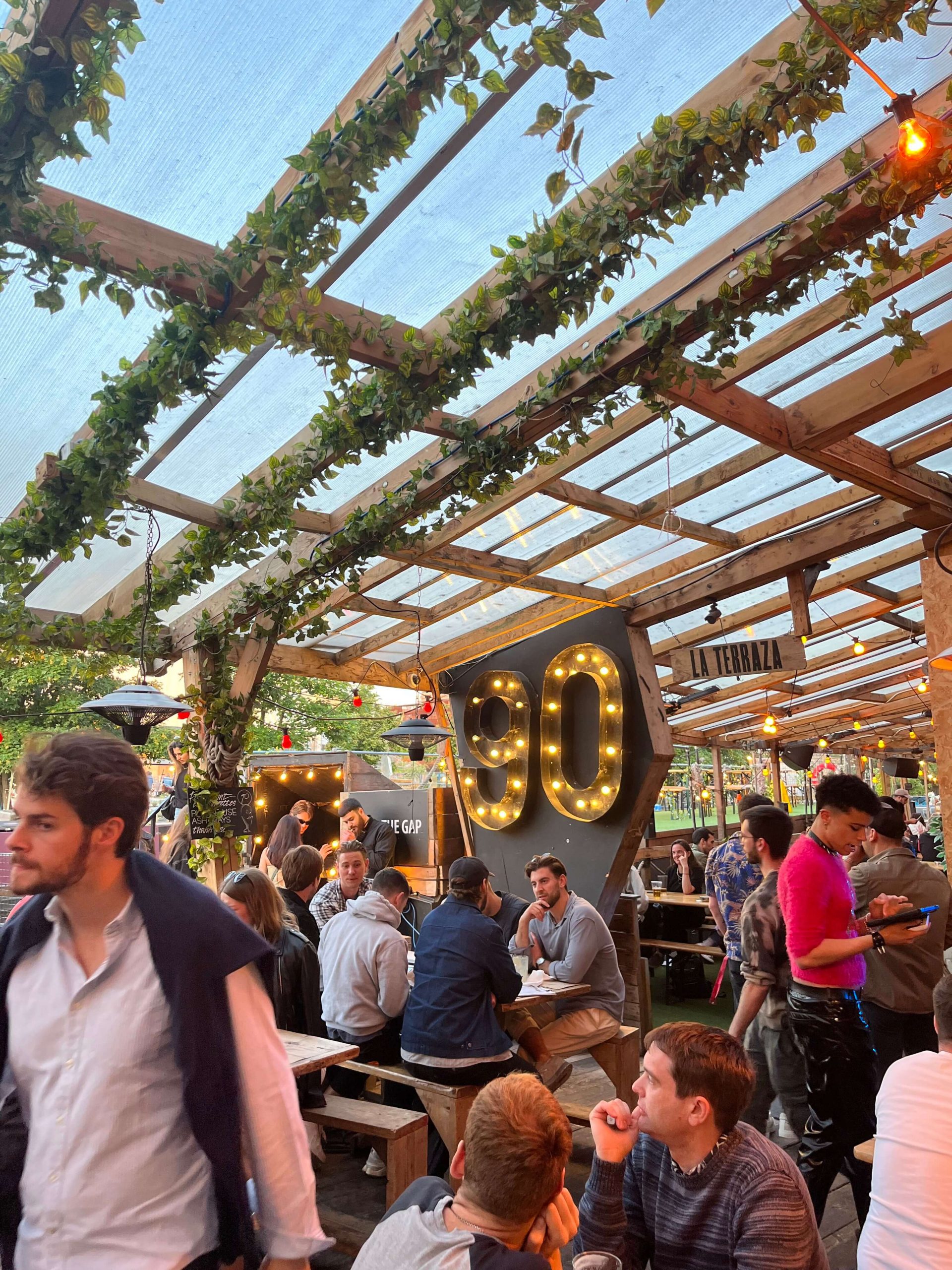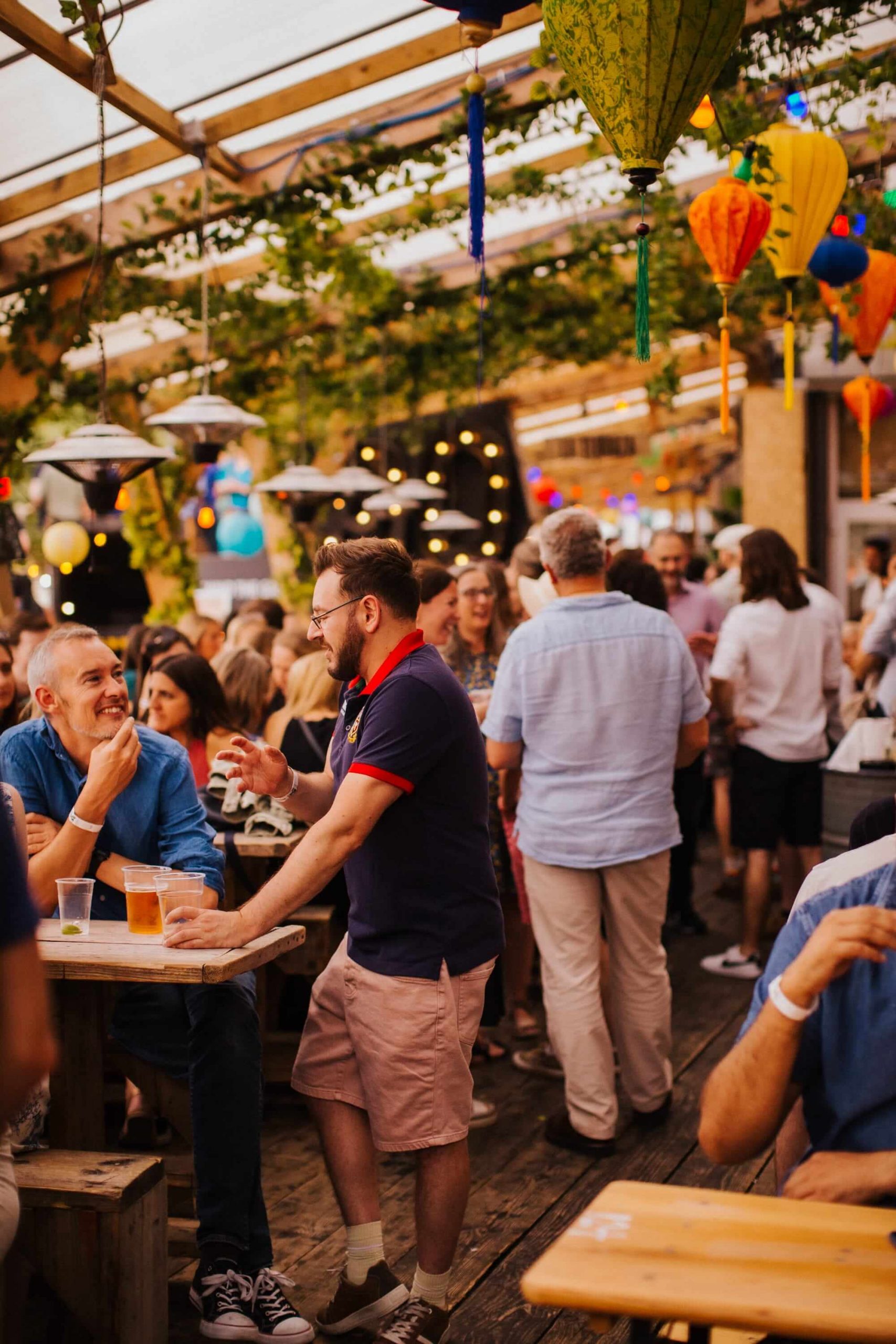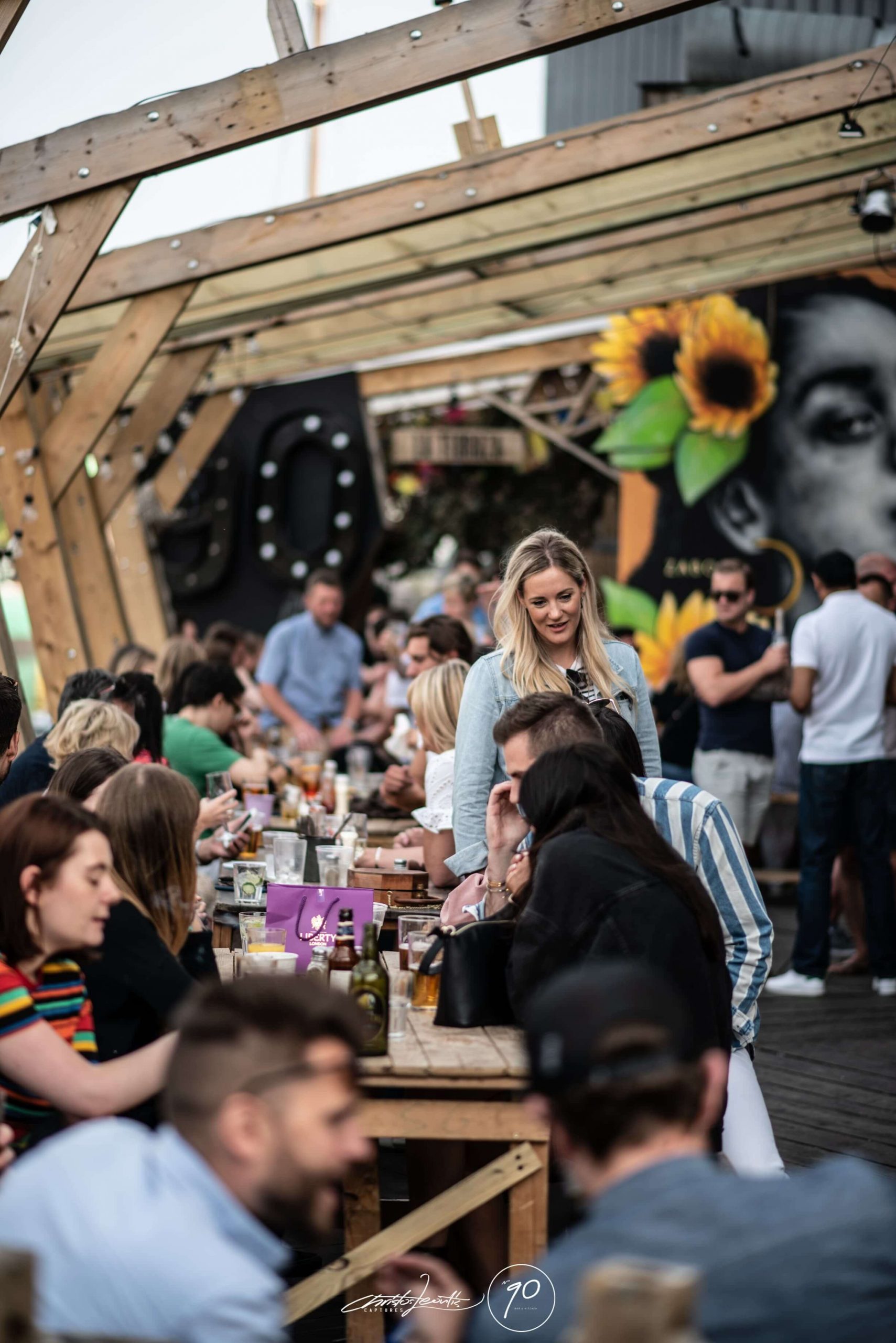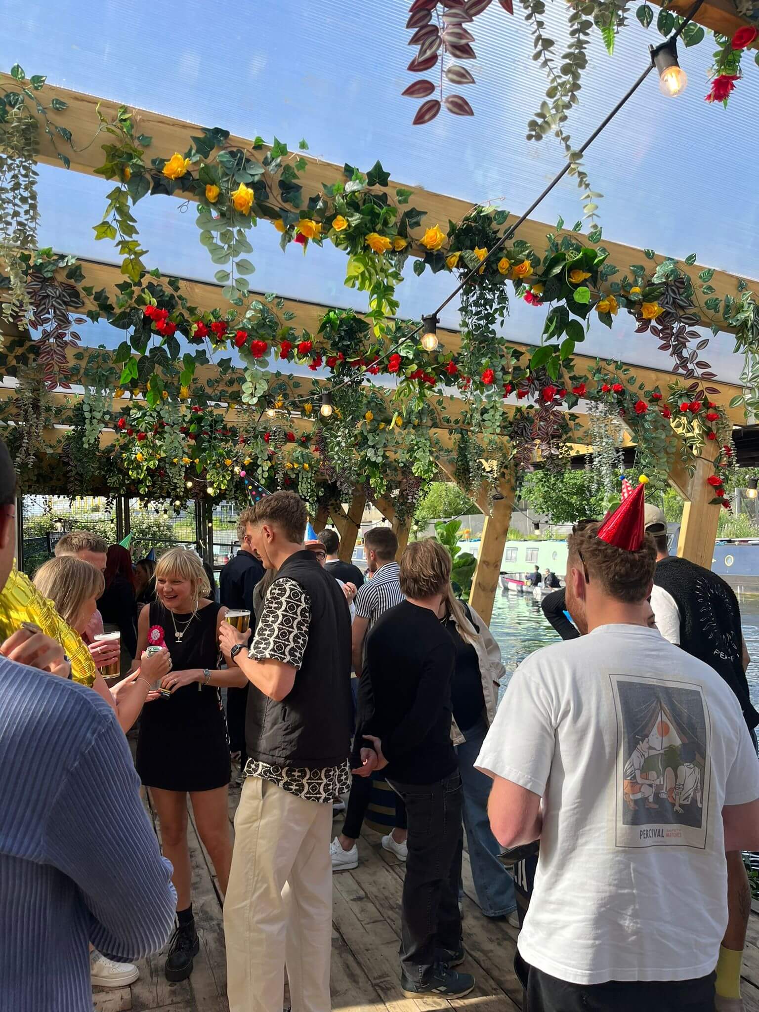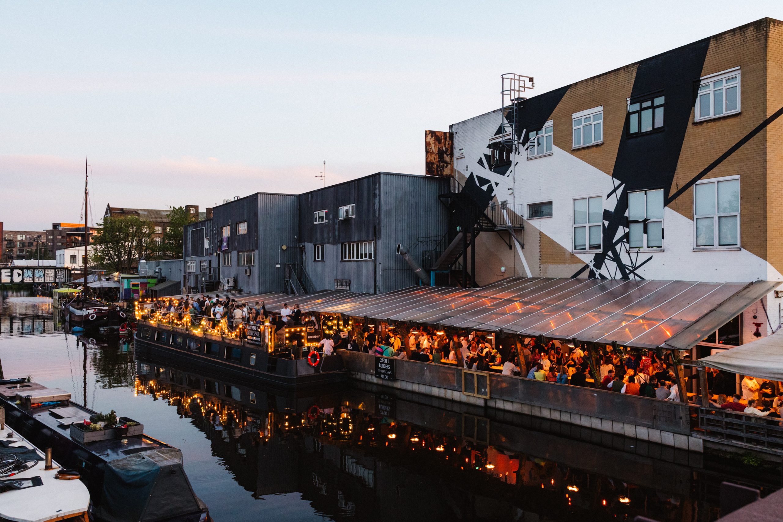 Welcome to the reimagined outdoor covered waterside Astro Deck Terrace at Number 90. A charming area available for private hire at Number 90 Bar in Hackney Wick.